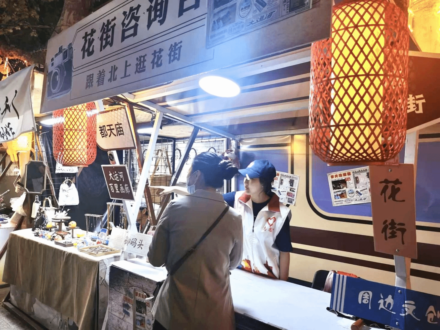 此外,志愿者们还化身为文创推荐官,向游客展示独具花街特色的文创产品,从印有花街风景的明信片,到精巧的手工艺品,这些文创产品不仅是纪念品,更是花街文化的流动名片。