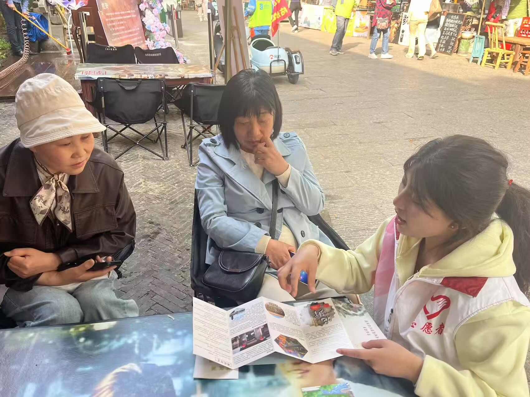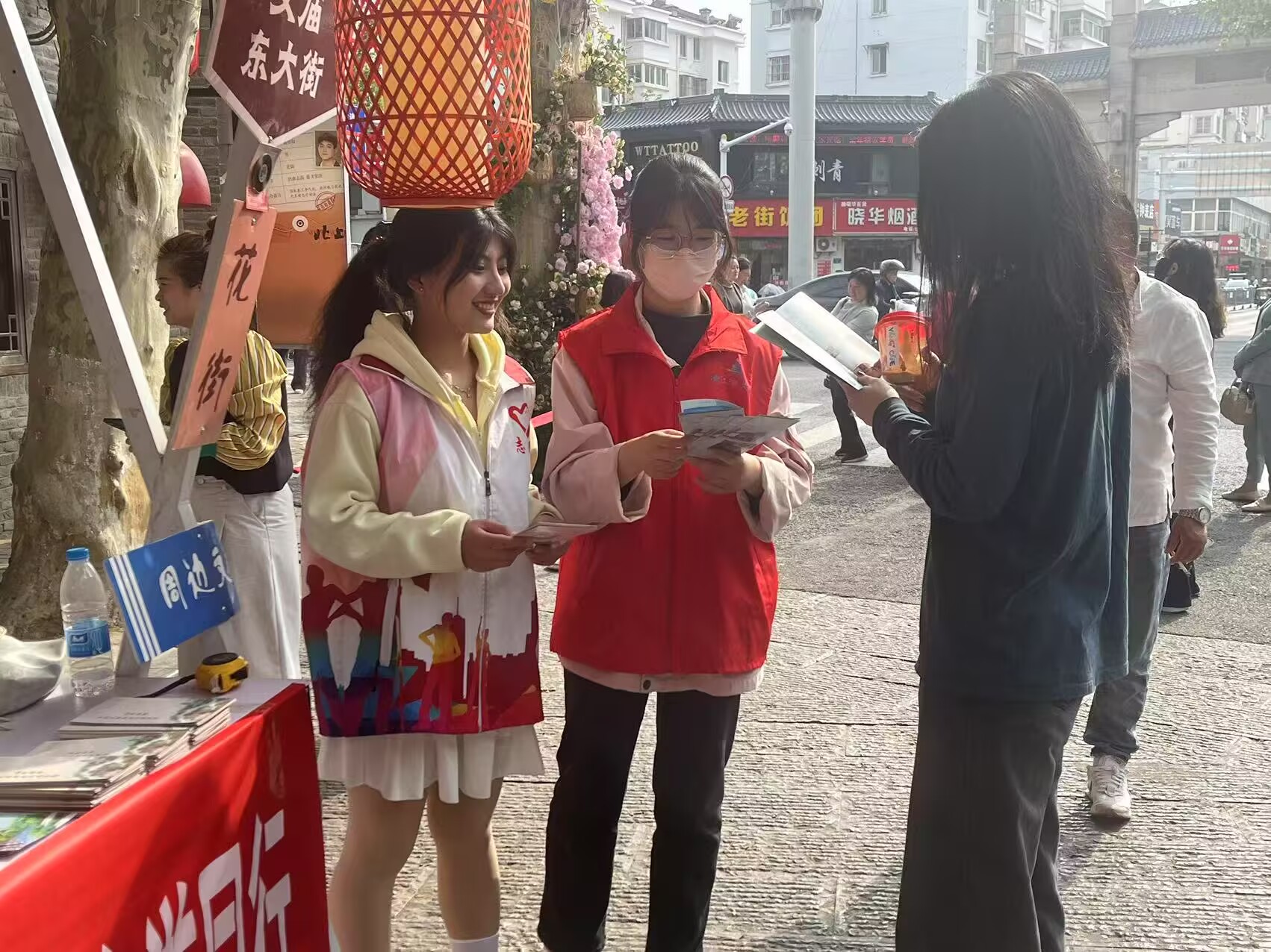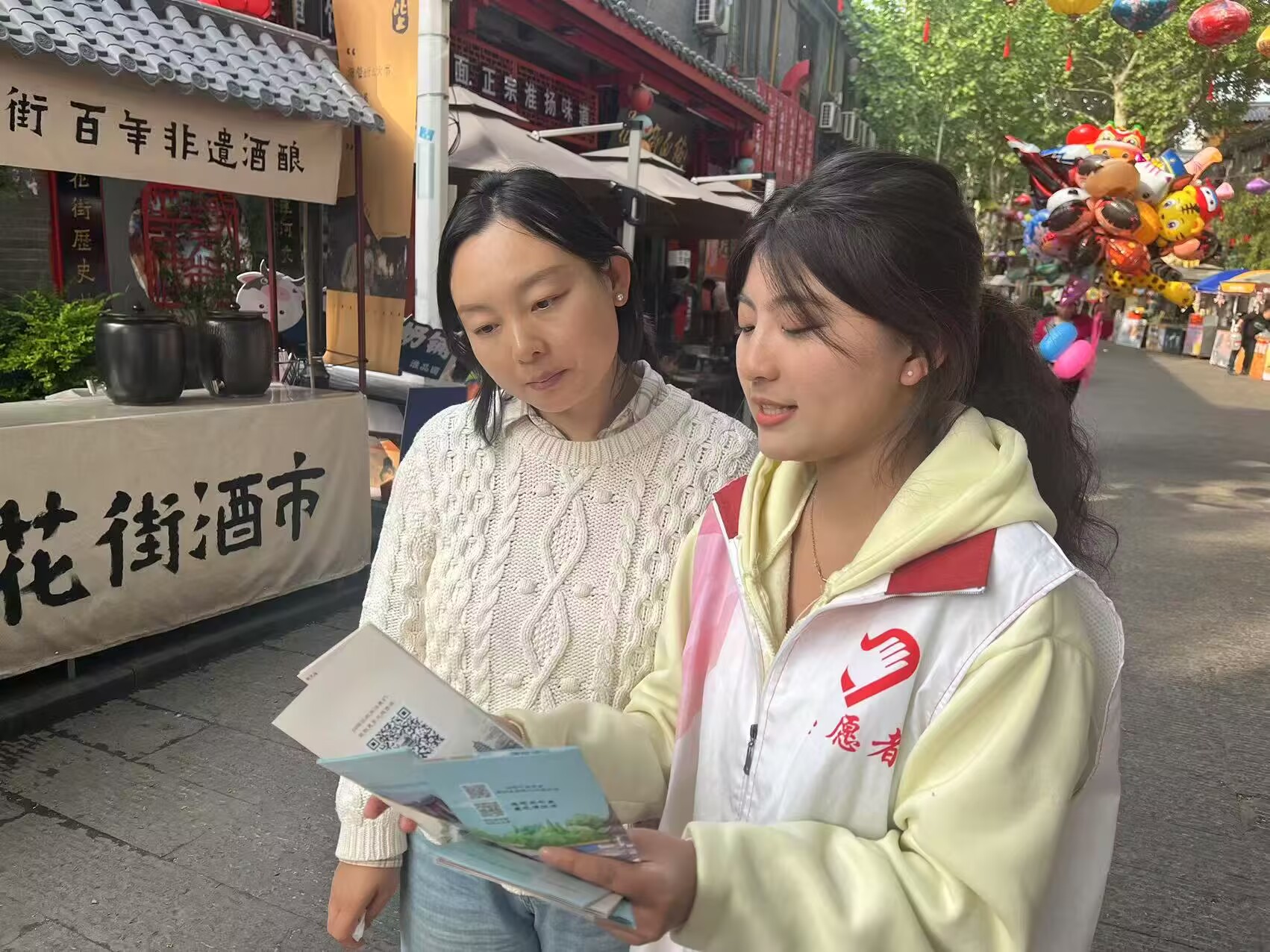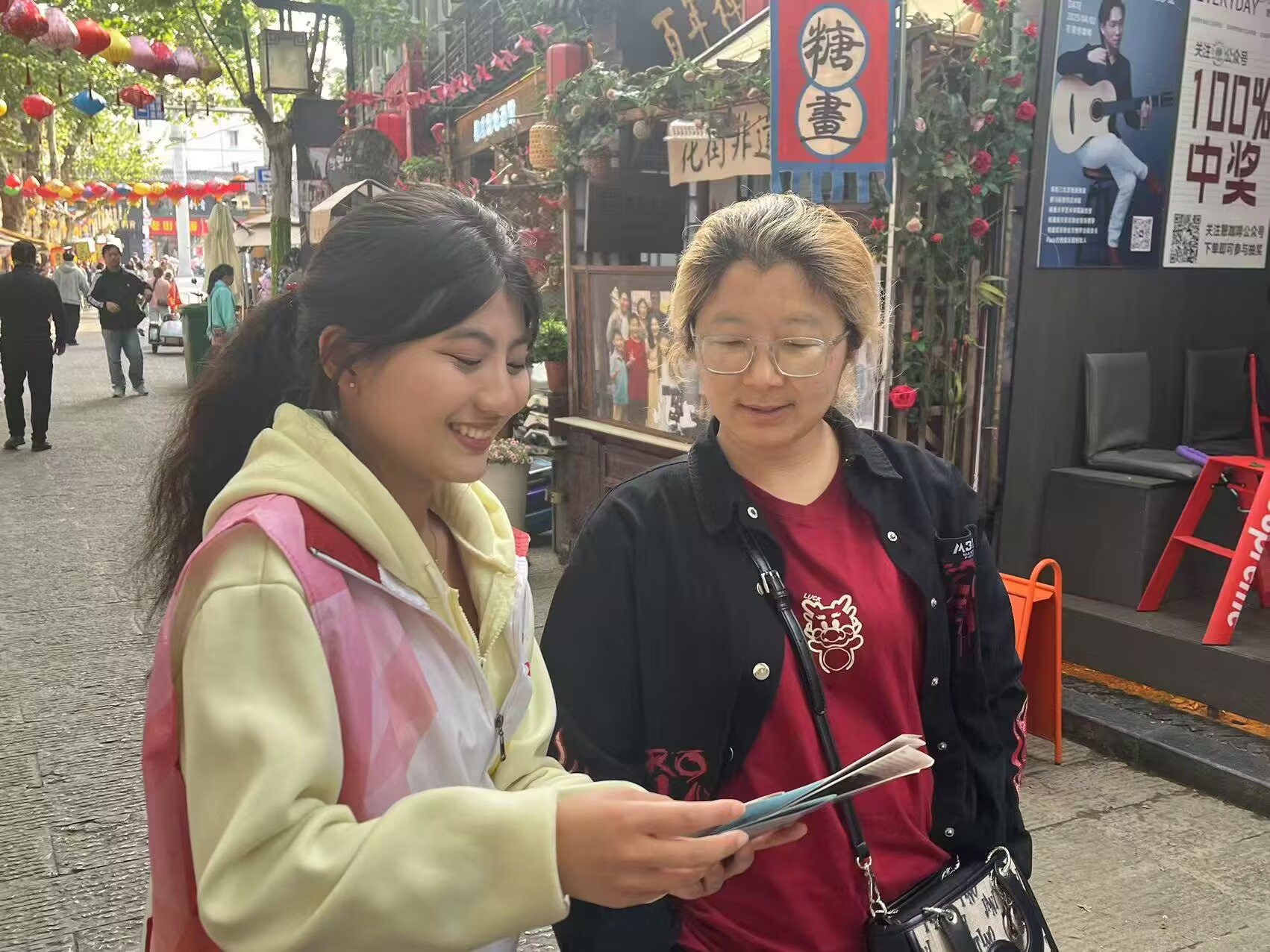 一处特别的花街咨询台成为游客们的“信息补给站”。志愿者们负责人员引导,用微笑和耐心为游客规划最佳游览路线,极大提升了游览效率。文化讲解志愿者带领游客深入领略花街深厚的文化底蕴。