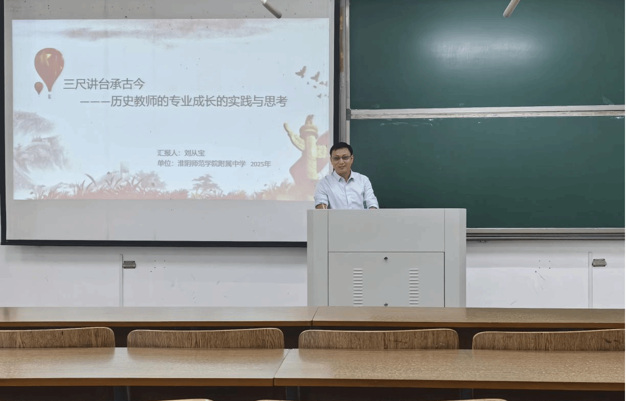 其次,刘从宝老师以“中学历史教学的心得体会”为主题,围绕教学使命、学段差异、设计逻辑与方法创新,系统阐述初、高中历史教育体系,强调从知识传递到思维培育的教育转型。