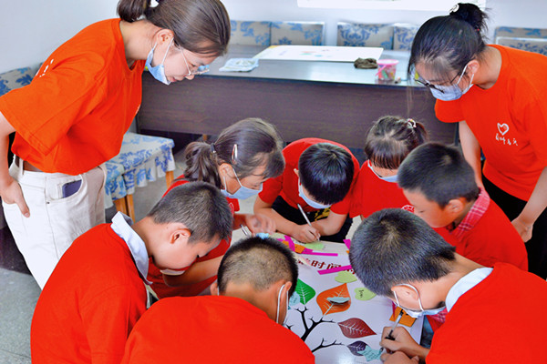 “博爱青春”专项团队“社工服务助困助学”主要通过开展个人和家庭成长,促进居民加强个人和家庭建设;开展邻里互助与结对帮扶,注重社区层面间的邻里互助,同时开展城乡结对帮扶,为乡村困难群体链接城市相关的社会资源,特别贫困家庭的儿童和青少年的互助帮扶,以期实现精准帮扶、促进家庭发展。在当天的揭牌仪式前后,志愿者们带领留守儿童做手工、开展“做时间的主人”——儿童时间时间管理小组活动等,取得了非常好的效果,为2020暑期社会实践活动开了个好头。