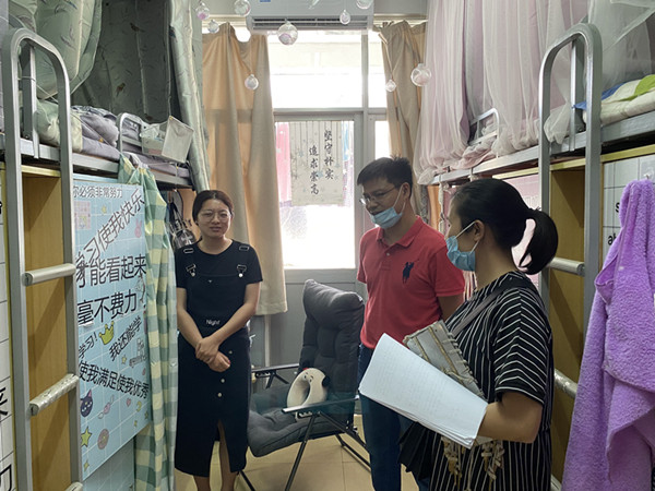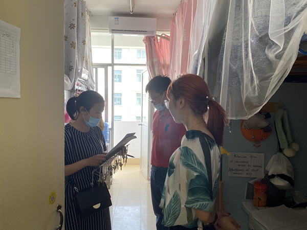 为做好疫情防控期间公司员工宿舍安全卫生管理工作,切实加强住宿员工的安全保障,6月3日下午,EVO真人视讯丁浩亮书记和纪群老师深入在校员工宿舍,针对人身财产安全、用电安全、宿舍卫生、个人防护等方面进行了全面检查。