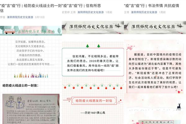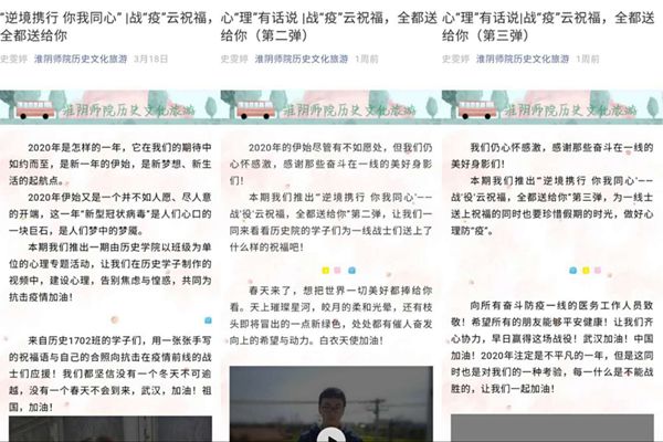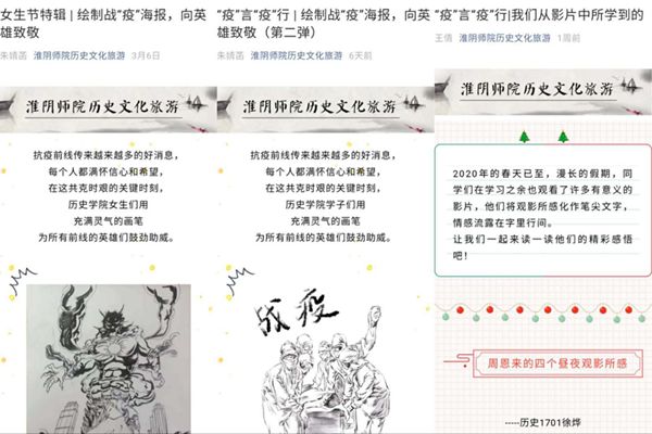 行有所效,弘扬榜样力量。在公司的倡议下,同学们用文字、海报、书画的形式致敬“最美逆行者”,为抗疫一线的英雄们加油助威。邀请付佳倩等三位国家奖学金获得者,分享自己的学习经验,通过榜样力量展现青春力量。员工骨干张嘉诚、卞舒颖以云讲演的方式,为大家讲述抗疫中的所见所闻,所思所为,号召同学们为打赢疫情防控阻击战贡献青春力量。公司旅游管理员工党支部的党员们坚守初心,用“疫”言“疫”行,为抗疫一线应援,在疫情防控中增强党性,锤炼意志,体悟初心本色和使命担当。