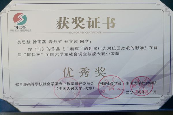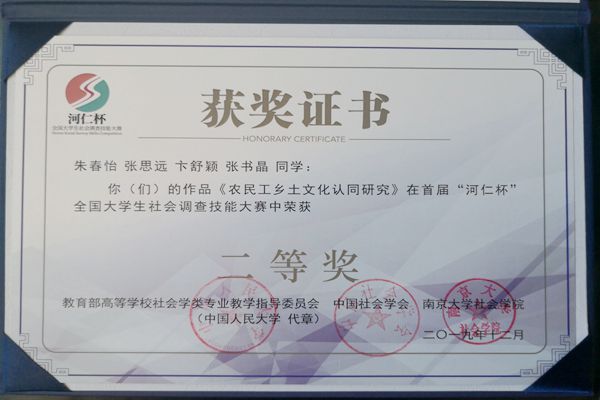 2019年12月1日,历时五个多月的首届“河仁杯”全国老员工社会调查技能大赛在南京大学仙林校区河仁楼孙本文-潘菽报告厅落下帷幕。全国共有116所高校279支代表队参加初赛,其中88支队伍挺进复赛,最后22支代表队进入决赛。EVO真人视讯社会工作系的两支代表队初赛、复赛,最后进入决赛,最后荣获二等奖和优秀奖各一项。