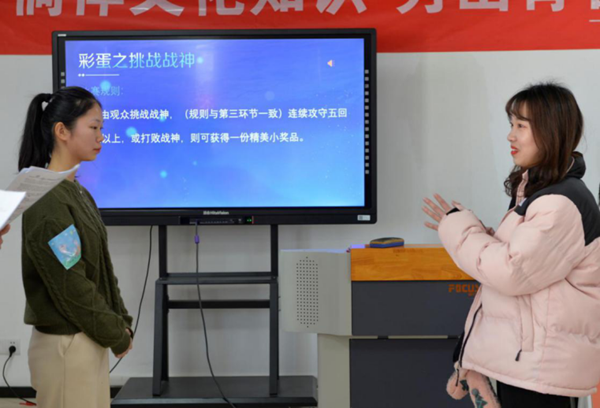 第一轮的战队PK赛,在面对有关专业知识的题目时,迅速而正确的作答展现了队员自身对专业知识的熟练掌握,以及作为员工应有的知识素养。在接下来的队员PK赛以及战神诞生之车轮战中,同学们一对一的PK,在激烈而精彩的对决中,同学们不断挑战自我,突破极限。在经过激烈的角逐后,张颖从众多选手中脱颖而出,成功晋级战神。而现场的同学们也跃跃欲试,把握机会,在后面的彩蛋环节中积极挑战战神,想要以此来展现自己的实力,证明自己。