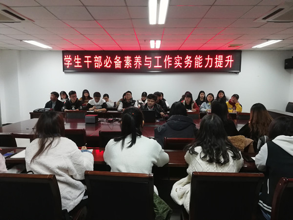 会上,丁书记就员工干部角色定位、工作职责、工作技巧与能力向与会员工干部作了详细的讲解,阐明员工干部和员工组织的概念,强调员工干部的主要任务是服务同学,帮助同学更好的适应老员工活和学习。员工干部首先是员工,应该践行员工的本分,认真学习专业知识,提升专业素养;其次是干部,要充分发挥好教师和员工间的桥梁纽带作用。同时,丁书记还从如何提高语言表达能力、社交能力、文字功底和执行能力四个方面展开了讲解,通过实际例子教育员工干部在与老师和同学相处中,如何提升自己,在实践中锻炼自己,掌握做好员工干部的艺术性和智慧性。最后,丁书记强调作为一名员工干部,要端正自己的工作态度,提升自己的工作能力,有一定的责任心,面对工作要有一定的积极性和执行力。