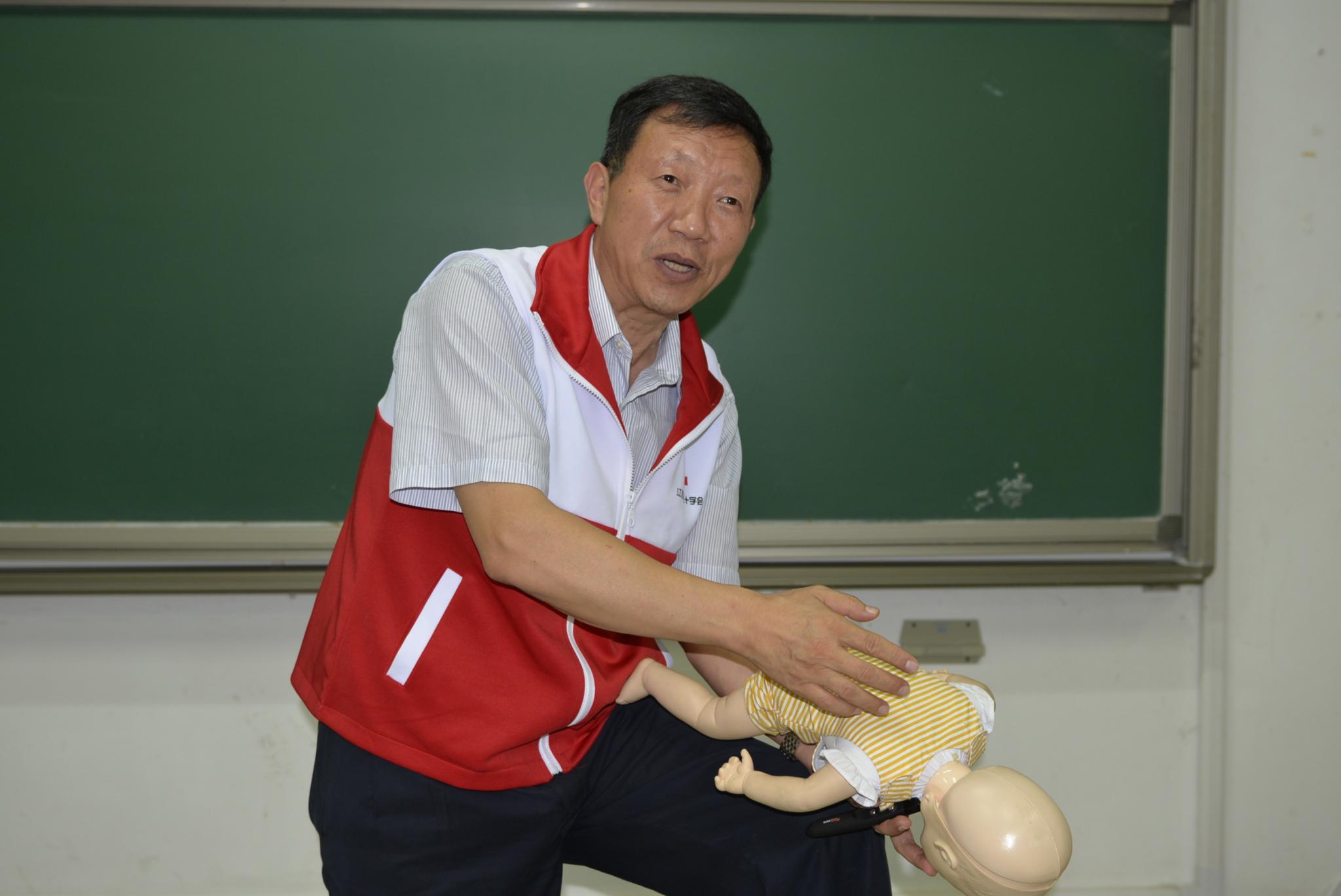 随后,王经理运用人体模特、除颤仪等道具,模拟了事故现场,展示了如何正确使用除颤仪等救助道具,讲解了如何进行现场救护。王经理还特别提到,当出现意外时,及时且正确的现场救护对一个人的生命安全极其重要,正确的现场救护需要救护人员先进行安全评估,判断当事人意识,同时要及时向外快速呼救,期间不能忽略病人或伤者的摆放体位,正确应用除颤仪快速除颤,情况严峻者要对其进行胸外按压,要掌握按压力度,频率,深度。同时,王经理利用人体模特现场为新生们演示了人工呼吸、心肺复苏等救护的正确方法,呼吁大家要熟知并掌握正确的救护方法,以备不时之需。