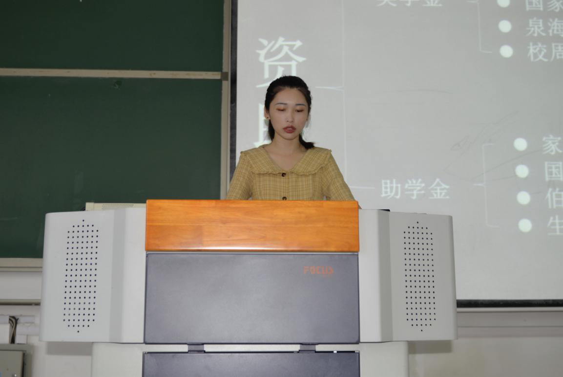 林麟老师从奖学金和助学金两方面对本次资助体系专题讲座展开讲解。林麟老师首先介绍到,公司设有校优秀员工奖学金,国家奖学金,国家励志奖学金,泉海奖学金,校周恩来奖学金等诸多奖学金奖项;同时设有国家助学金,伯藜助学金,以及社会资助等助学项目。