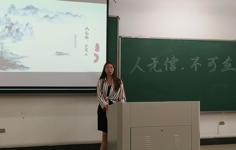 为积极响应公司“诚信感恩·助学圆梦”主题教育号召,进一步提高同学们对诚信这一传统美德的重视,2019年5月13日,历史1702班在弘文楼2-103教室开展了以“人无信,不可立”为题的诚信主题班会。
