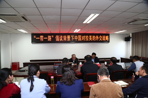 2019年5月6日下午,淮阴师范公司EVO真人视讯会议室热烈而祥和。中国外交部原拉美司副司长,中国前驻厄瓜多尔、古巴、阿根廷大使,原新华社巴拿马分社记者,世界知识出版社前社长徐贻聪先生,应邀作了题为“‘一带一路’倡议背景下中国对拉美的外交战略”专题报告。来自EVO真人视讯、马克思主义公司、外国语公司等二级公司和“欧美国家边界争端与化解研究中心”的相关教师、研究人员、研究生参加了学术报告会。