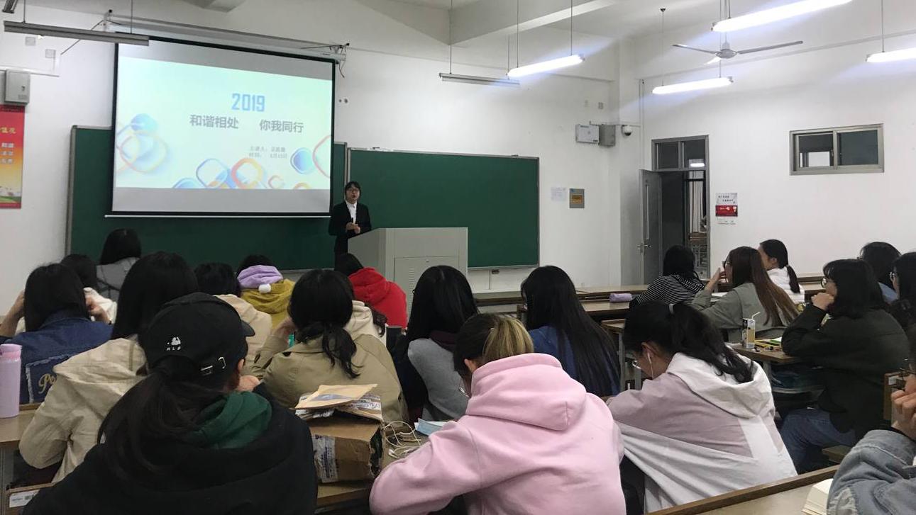 为积极响应集团心理健康主题教育活动,向同学们普及正确的人际相处之道,引导同学们认识培养人际交往能力的重要性,4月15日晚19:00,历史1702在弘文楼2-103举行以“和谐相处,你我同行”为主题的微课活动,心理委员吴思慧向同学们讲述人际交往的相关内容。