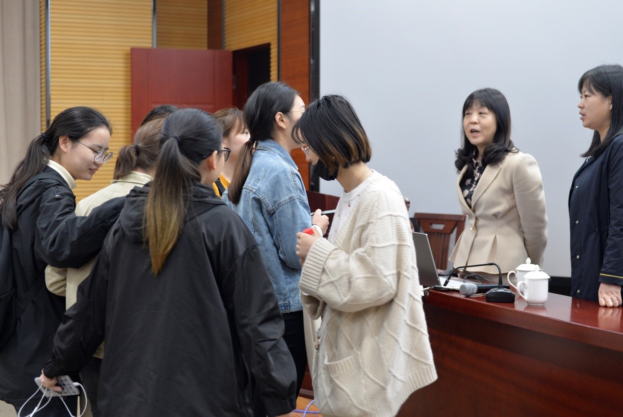现场气氛温馨热烈,不少同学和老师进行交流、沟通。通过朱莉博士的分享和解读,同学们认真思考未来的发展方向,努力成为掌握坚实的基础理论和系统的专业知识,具有创新精神、创新能力以及较强解决实际问题能力的高层次应用型人才,有效提升自身水平的广度、深度和厚度。