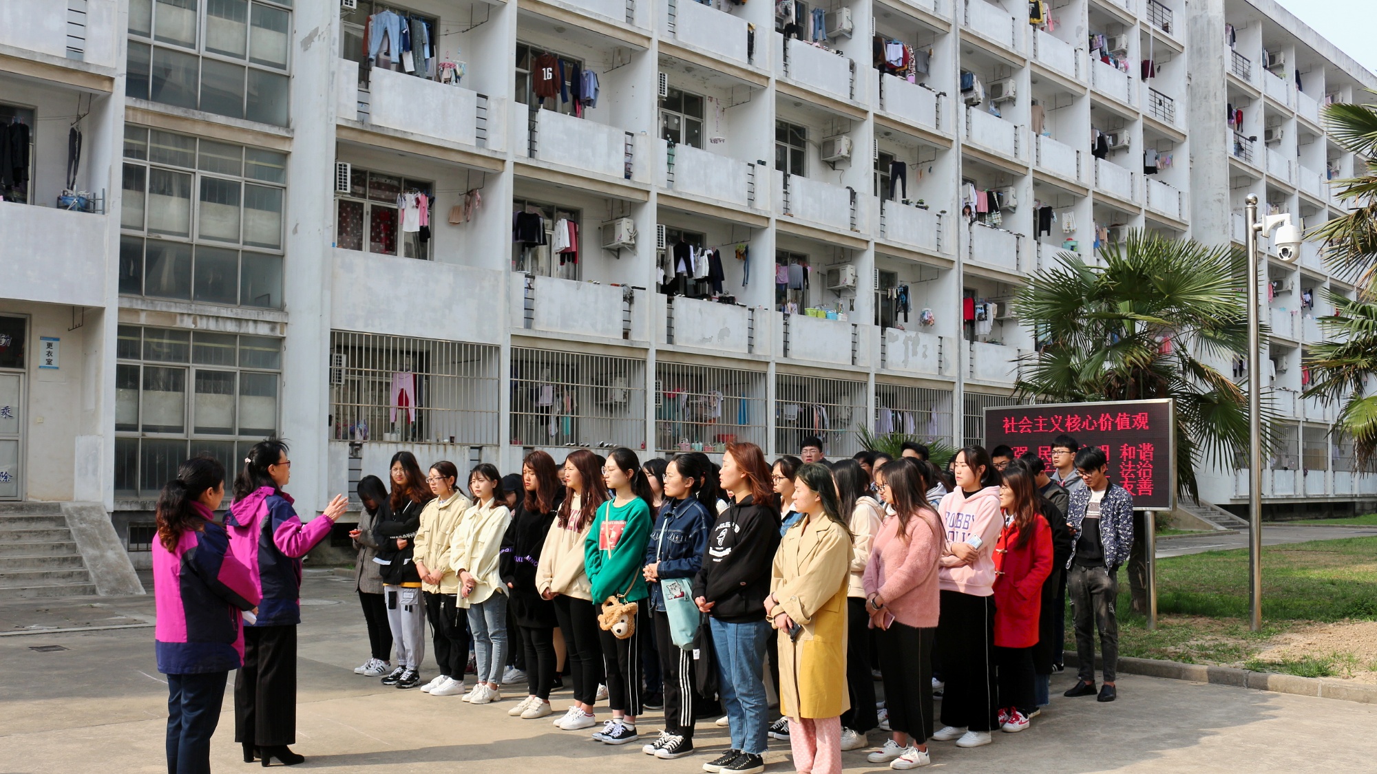 为进一步贯彻落实主题教育月活动精神,加强同学们自我管理能力与宿舍安全意识。3月30日早,EVO真人视讯于3号宿舍楼院内组织大一至大三全体员工干部进行了宿舍卫生与安全的学习,并由内务检查组的两位老师进行了现场解说与指导。