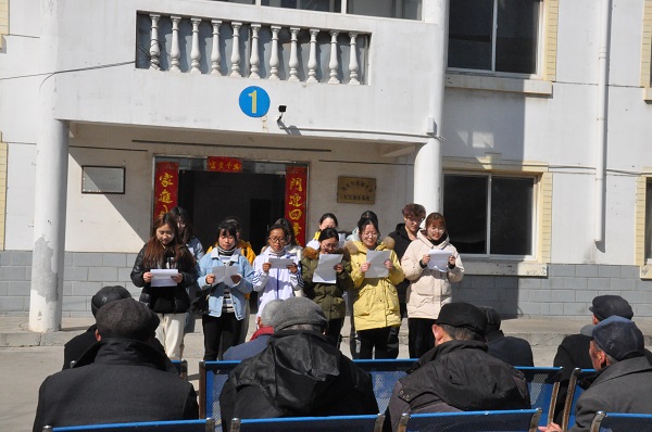 当日的温度虽然不高,但王营镇敬老院里却不时传来阵阵欢声笑语,原来是1602班的张磊、王蓉等同学正在为老人们表演小品《如此雷锋》。曲解雷锋精神的另类学雷锋,给大家带来欢乐的同时,也使大家更加理解了雷锋精神。1702班吴思慧带来的一曲《黄梅戏》,悠扬婉转的歌声仿佛让我们回到了前辈们的时代,也激起了老人们内心尘封多年的回忆与往事,架起了一座连接现代与过去的桥梁。由谈寅峰和孙玲同学带来的相声《敬老》,通过戏说各种当今社会的无视老年人,不尊重老年人的行为,告诉我们不能抛弃爱老敬老的中华传统美德,更要付诸实践,真真切切地为老人们着想,此外还有1702班带来的小品表演《甄嬛歪传》。