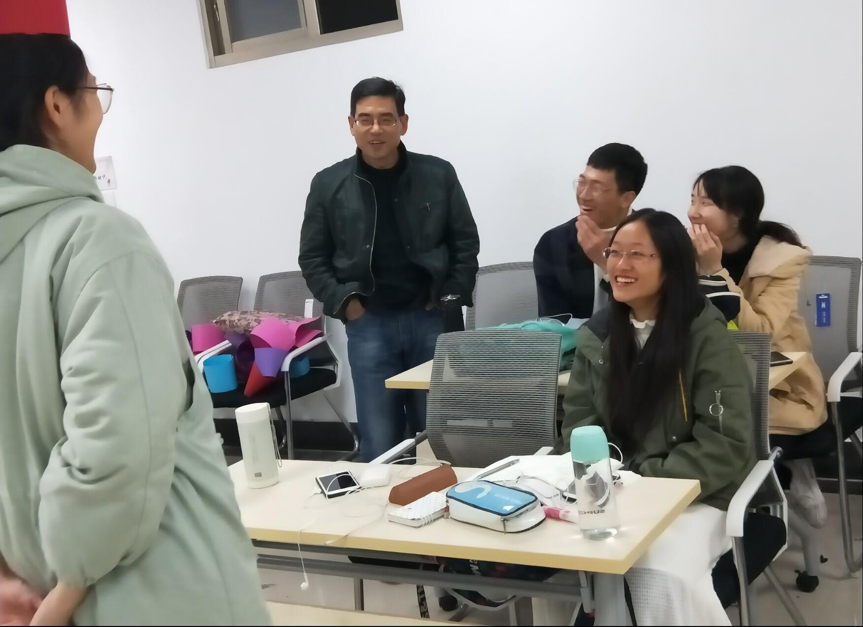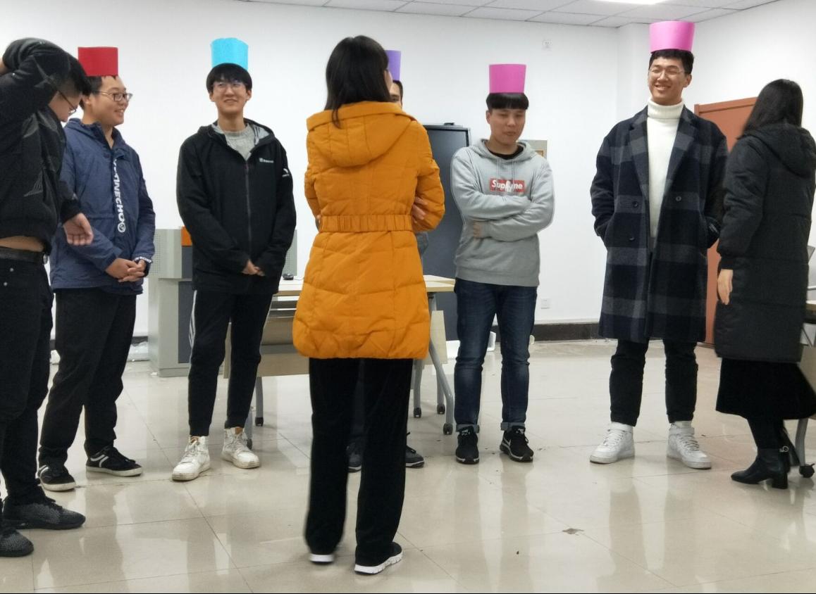 春寒料峭的室内靠着“人气”将满室烘烤,窗户中渗透的丝丝冷风,仿佛成了大家亲近的催化剂,在第一个活动开始前,已是一片欢腾。主持人事先将同学们分6个小组,第一个环节让被选中的同学到教室中央,为其戴上“皇冠”,加冕为王,皇冠上是班中其他同学的名字,选中的同学需要提问组员各种问题,要求他们头上的姓名猜出,但是组员的回答只限于“是”与“否”,活动中闹出了许多笑话,加深了同学们彼此之间的了解。