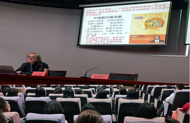 中国历史悠久,文化璀璨,朝代多,皇帝多,改朝换代频繁复杂,其中的原因何在?奥秘何在?胡教授从历史宿命、正当理由、成龙效忠、万象更新、托古改制、大势所趋六个方面做了全面分析,让同学们恍然大悟、大开眼界。为时3个多小时的报告,上自天文,下至地理,中及人事,将天地人综合考察,由历史到现实,由过去到当下,从政治讲到文化,从文化讲到人生,内容丰富,视野宏阔。经过深入浅出的解读,使深奥的经典变得通俗易懂,复杂的历史变得线索分明,神圣的事件变得直白真实,更加符合世故人情。胡教授幽默的语言,诙谐的事例,精辟的分析,鲜活的想法,洒脱的风格,给全体与会师生留下了极为深刻的印象。