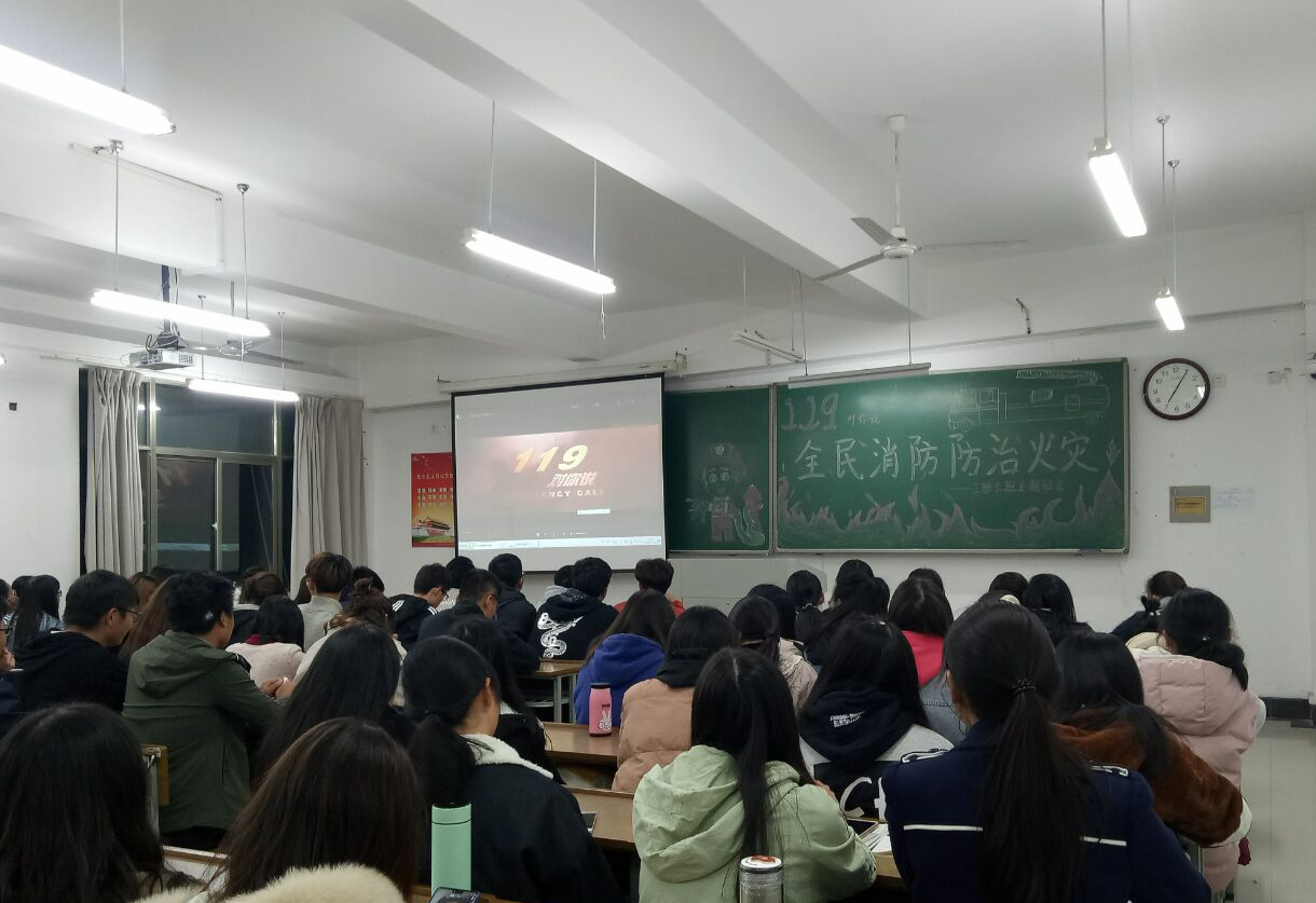 2018年11月7日下午7时许,EVO真人视讯1801班与1805班,1803班与1806班借“119消防宣传日”的契机,联合举办了主题为“全民消防,防治火灾”的班会活动。