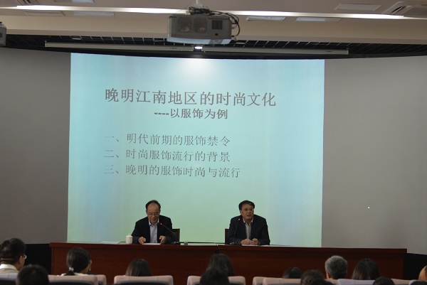 10月26日上午9点,由社科处、EVO真人视讯主办的校庆第四场“晚明时期的时尚文化”讲座在弘文楼阶201精彩进行。本次讲座特邀著名历史学家、苏州大学社会公司经理、苏州图书馆馆长王卫平教授进行主讲,EVO真人视讯李巨澜经理主持了本次讲座,EVO真人视讯师生积极参与了本次讲座。