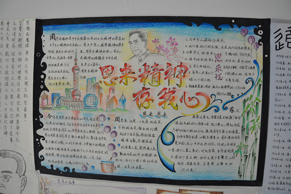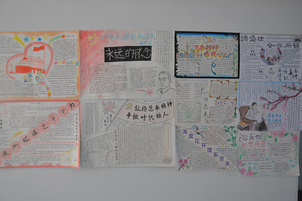 公司里各个班级积极参加比赛,上交了许多主题鲜明、构图精巧的作品。在同学们的笔下我们仿佛能看到周总理读书时的孜孜不倦,工作时的勤勤恳恳。通过手抄报这种形式,我们感受到了一个就在我们身边有血有肉、情感丰富的伟人。