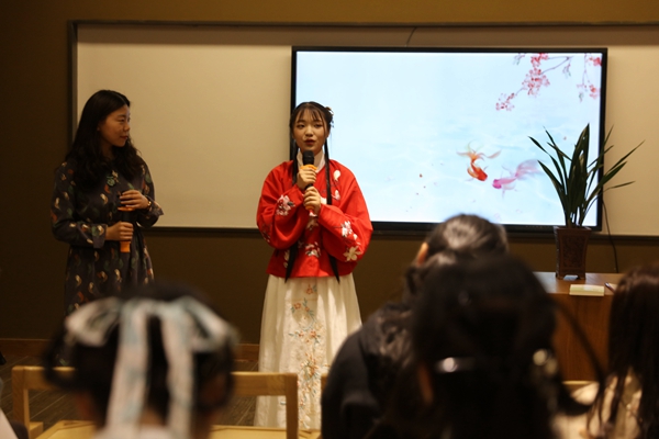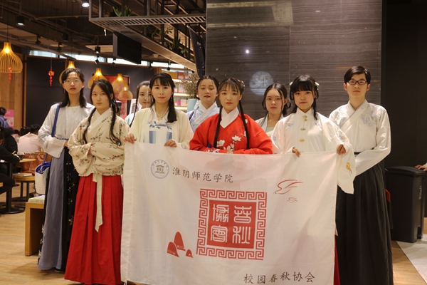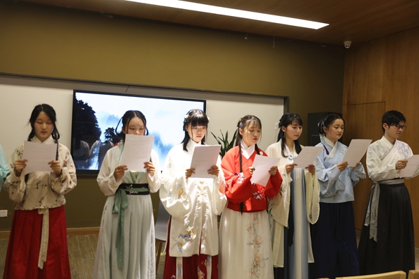 4月14日下午,校园春秋协会成员受邀参加淮安花漾城“知行空间”图书馆举办的“你是人间的四月天”诗会交流活动。同学们身着汉服,带着自己准备的精美诗词踏入书店。吴奇同学的一首《玉楼春·春景》拉开了活动序幕,而后同学们一一诵读了自己准备的作品并简要讲解了诗中、词中的意境。罗光德同学开创了新的诵读模式,用各地特色方言吟唱诗词,别有一番风味。秉承社团弘扬传统文化的理念,同学们简单介绍了身着的汉服和发饰,以及礼仪知识,和其他人一起愉快地交流了诗词。 本次活动给诗词爱好者一个很好的展示和交流机会,除了伟大的诗人词人之外,我们伟大的周总理也创作过很多优美的诗词,本次活动以诗词交流的形式庆祝周总理诞辰一百二十周年。春光明媚,百花盛开,春天到处都呈现出生机蓬勃的景象,就像我们优秀的传统文化,即使会经历风雪,春风一吹便会复苏,蓬勃发展。