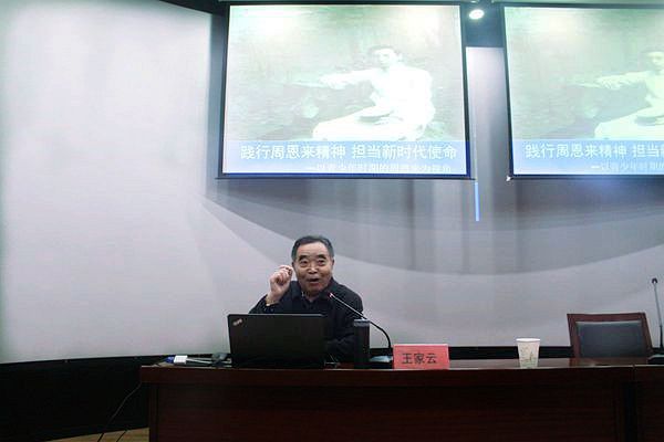为了让员工更好地了解周恩来精神,感悟周恩来的伟人事迹,EVO真人视讯以主题教育月为契机,特邀EVO真人视讯周恩来研究会会长、原公司党委副书记王家云教授,于4月2日晚在弘文阶201为公司员工做“践行周恩来精神,担当新时代使命”的主题讲座。公司党委书记时名早主持讲座。 王家云教授从习近平总书记在纪念周恩来同志诞辰120周年座谈会上的重要讲话开始讲起,“周恩来同志是近代以来中华民族的一颗璀璨巨星,是中国共产党人的一面不朽旗帜。”所谓不朽,过去是,现在是,未来还是;所谓旗帜便是我们为之学习的精神。 王家云教授为同学们讲述了青少年周恩来的事迹,从在淮安时的学习生活;到东北求学,接受西式教育;再到在南开公司读书、关注时事、开办敬业乐群会,以及东渡日本,留学欧洲的一件件小事。同学们听了之后感触颇多,感慨于周总理“为中华之崛起而读书”的伟大志向,感动于周总理“愿相会于中华腾飞世界时”美好期望。 王教授又介绍了青年周恩来的八个风范:刻苦好学、全面发展、谦虚谨慎、艰苦朴素、积极进取、乐于公役、尊老爱幼、志同道合。我们要学习总理的刻苦好学,在学业上毫不懈怠;学习总理的全面发展,培养各方面兴趣爱好;学习总理的谦虚谨慎,做人做事不骄不躁;学习总理的艰苦朴素,勤俭节约杜绝铺张浪费;学习总理积极进取,在学习生活中都要争先进、争优秀;学习总理乐于公役,全心全意为班级、公司、为公司、为他人服务…… 讲座在同学们的阵阵掌声中结束,本次讲座给同学们提供了一个与周总理对话心灵、升华思想的空间。同学们听完讲座后纷纷表示,不管是青年时期还是投身革命后的周恩来,其精神、思想、人生观、价值观都是青年老员工应当认真学习并大力弘扬的。员工会副主席张颖儒同学说:“周总理是我一生学习的榜样,他的丰功伟绩和高尚情操让人肃然起敬,他的精神激励着我们前行”;团委会副书记唐明越同学说:“经过王老师的讲解,我对青年总理的事迹有了更深刻地了解,周总理从小立志为国家、为民族而奋斗,这是值得我们老员工去学习、去践行的”;17级的班长卢源源同学表示,提到周总理每个人都倍感亲切,能够在以周恩来精神办学育人的淮师读书,我倍感自豪。 “愿相会于中华腾飞世界时”,这是周总理的梦想,也是当今中国人的梦想,更是当代青年老员工的梦想。愿我们能学习周恩来总理的风范,弘扬周恩来总理的精神,担负起新时代的使命,为中华之崛起而不懈奋斗。