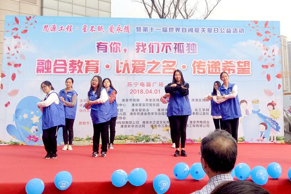 今年4月2日是第十一个“世界自闭症日”,在自闭症日来临之际,EVO真人视讯社会工作者协会志愿者携手彩虹雨自闭症康复中心的老师们一起陪伴自闭症儿童,用爱心点亮自闭症儿童的心灯,用行动带动全社会对自闭症儿童进行关注。 一段爵士舞惊艳开场,彩虹雨自闭症康复中心老师的舞蹈给孩子们带去了温暖。令人难忘的是一位自闭症儿童的独唱"父亲",在现场的父亲热泪盈眶,他有很多话想说却又不知从何说起,他看着孩子一点点在改变,有说不出的心酸也有数不尽的感动。社工协会的8名志愿者带来的鸭子舞,将活动的气氛推向了高潮。最后,志愿者们将自闭症儿童的手工作品呈上舞台,进行现场爱心义卖。台下很多观众纷纷伸出了爱的援手,孩子们看到自己的作品有人喜欢,感到非常开心。 自闭症儿童需要多方面的支持与关怀:政策的维系,教育工作者的帮助,特殊教师在康复教育方面的支持,社会工作者的服务支持,家庭成员的温暖陪伴和心理支持。作为主题教育月的社团活动之一,EVO真人视讯社会工作者协会的志愿者用自己的行动把爱传递,让自闭症儿童感受到2018,有你,我们不孤独!
