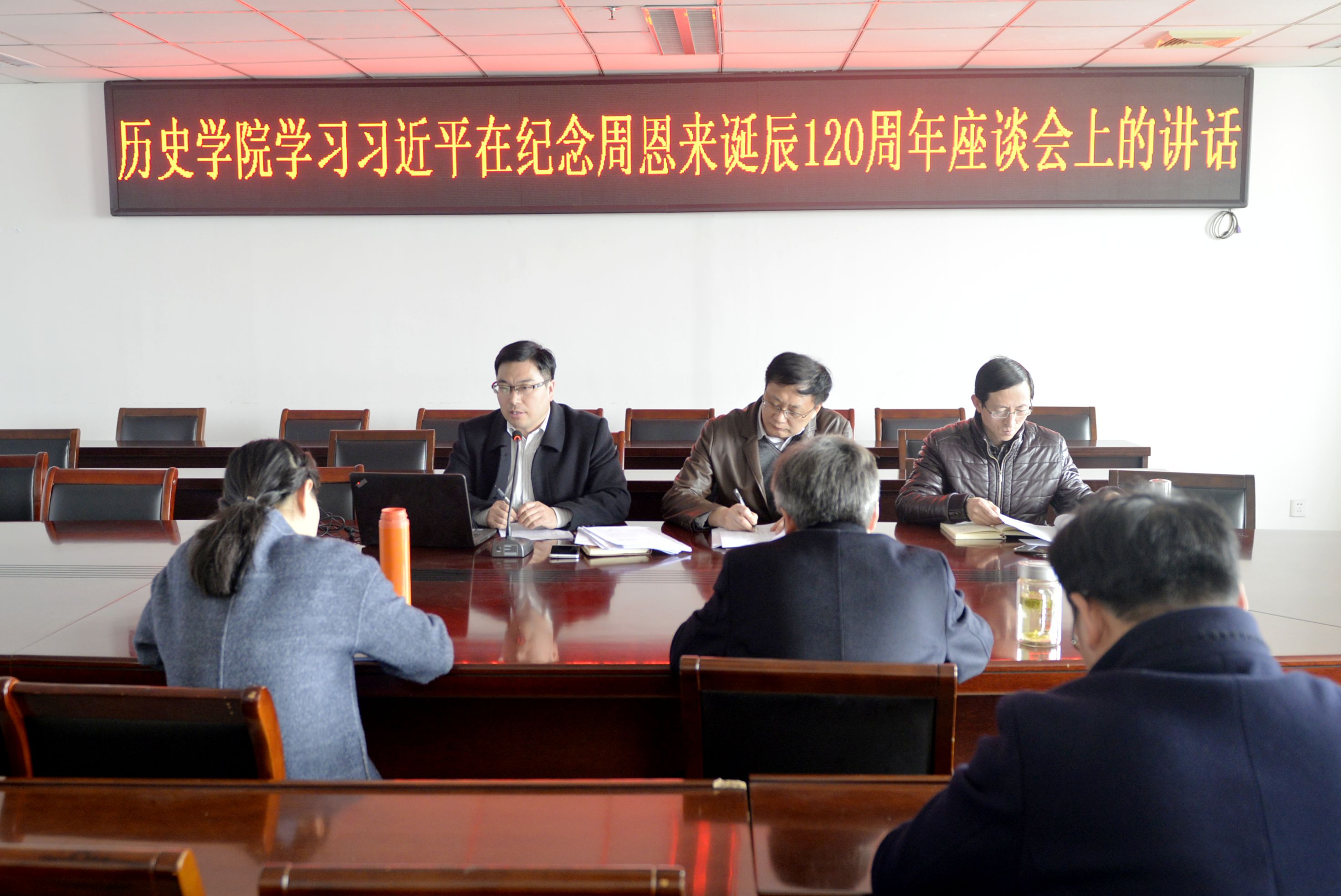 2018年3月1日上午中共中央在人民大会堂举行座谈会,纪念周恩来同志诞辰120周年,中共中央总书记、国家主席、中央军委主席习近平发表重要讲话。3月14日,EVO真人视讯召开全体教职工大会,传达和学习习近平在纪念周恩来同志诞辰120周年座谈会上的讲话,会议由党委书记时名早主持。 时名早书记带领大家认真研读中共中央总书记、国家主席、中央军委主席习近平发表的重要讲话。“习近平在讲话中强调,周恩来,这是一个光荣的名字、不朽的名字。每当我们提起这个名字就感到很温暖、很自豪。周恩来同志在为中国人民谋幸福、为中华民族谋复兴、为人类进步事业而奋斗的光辉一生中建立的卓著功勋、展现的崇高风范,深深铭刻在中国各族人民心中,也深深铭刻在全世界追求和平与正义的人们心中。” 大家同时学习了江苏省委书记娄勤俭在中共中央纪念周恩来同志诞辰120周年的座谈会上发言。“周恩来同志一生奋斗,把全部精力奉献给了党和人民,为中国共产党的建立、发展、壮大,为新民主主义革命和社会主义建设事业的胜利,作出了重要贡献。家乡人民为江苏大地走出这样的伟大人物而骄傲!” 今年是周恩来同志诞辰120周年,EVO真人视讯多角度多维度学习周恩来精神,用实际行动来纪念敬爱的周恩来同志。