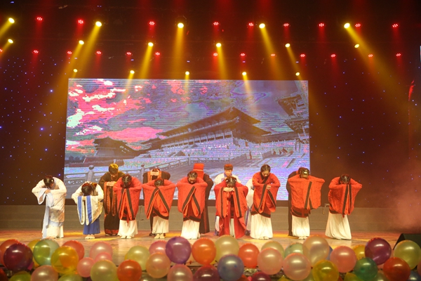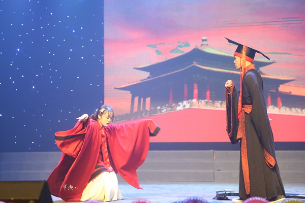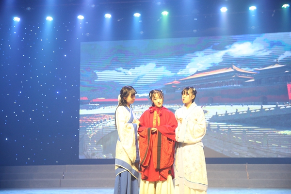 “西汉元帝时,一妙龄女子,以良家子选入掖庭,由画师为其描摹容貌,献之于元帝选妃”。话音刚落,一群红衣女子缓缓登台,她们或垂着脑袋,或小声私语,这正是由校园春秋协会带来的舞台剧《昭君出塞》。演员们一出场,便吸引了众人的目光。一曲婉转清扬的乐音响起,只见一袭红衣轻步曼舞,像燕子伏巢;疾风高翔,似鹊鸟夜惊。美丽的舞姿闲婉柔靡,机敏的迅飞体轻如风。她妙态绝伦,她玉洁冰清。仪容操行以显其心志,独自驰思于杳远幽冥。那欢畅淋漓的舞姿,那优美娴熟的动作,那千般娇姿,那万般变化,似孔雀开屏,似莲花绽放。此象风光,诚如大单于口中的“美哉、美哉”。