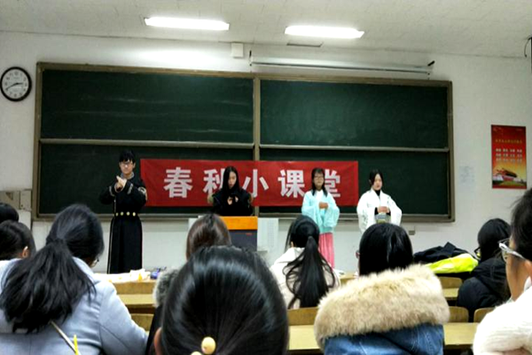 11月19日,由春秋协会主办的“春秋小课堂”活动在崇文楼举行。这次活动一共有国学知识普及、发簪制作2个版块,活动采取现场演示、场下互动等形式。 始于衣冠,达于博远,由我们礼仪司的相关负责人上台,向大家展示了古代男女各自行礼的礼仪动作,讲解了一些国学方面的知识,使得同学们受益颇多。 在大家掌握了一定的国学知识和技能后,就到了做发簪环节。发簪作为古代女子装饰品中不可或缺的一部分,一直被重视。看到这些材料在自己的手中变成了精美的发簪,同学们感到十分激动。 此次活动充分展现了同学们的动手能力和学习能力,大家对于汉服的认知也得到了增强,同学们获益匪浅。