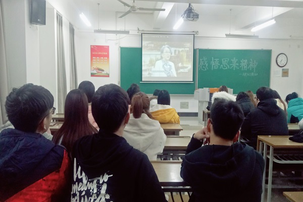 历史1602班团支部和1601班团支部分别于21日和23日晚七点在弘文楼开展团日活动——听周秉德演讲,悟周恩来精神。 在18日播出的《我是演说家》节目中,周恩来总理的侄女周秉德,这个和他最亲近的晚辈,给我们讲述了周总理的恋爱观、人生观,以及对后辈的教育。两个班均借此机会,将班级同学组织在一起,共同聆听这段演讲,感悟周恩来精神。 从这段演讲中,我们悟到了周总理的恋爱观:有共同的志向才是终身伴侣;我们了解到周总理教育晚辈不能有任何的特权思想;我们感受到周总理鞠躬尽瘁,死而后已的精神:临终时体重只有61斤! 61斤,这样的数字使郦波教授热泪盈眶,他说,再大的艰难险阻都阻挡不了像总理这样的伟人,他的精神和坚定的信念,真的是“不要人夸好颜色,只留清气满乾坤”。 而对于我们青年人,骊波教授也说到我们年轻人只要有总理身上的这种精神,最好的人生、最好的婚姻、最好的爱情都不是问题,这才是真正的人生大智慧。 100年前,也就是1917年,周恩来从南开中学毕业去日本留学,途中在沈阳给他的小学同学写了一句话:愿相会于中华腾飞世界时。我们不能忘记为现在的美好时代抛头颅洒热血的先烈们,也不能忘记所有为新中国的建设做出贡献的普通人。 我们要接过他们手里的接力棒,只要每个人都以建业兴邦为己任,对社会尽责任、对工作负责任、对家庭尽义务,做好自己该做的事,就能不辱使命,不负时代,实现中华民族伟大复兴的中国梦! 听了这段演讲同学们感悟良多,纷纷拿起笔,写下自己的心里话,今天,我们终于可以勇敢地、大声地告诉周总理:“我们的国家正在崛起,我们的民族正在腾飞。这个中华盛世,如你所愿!”
