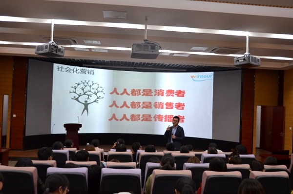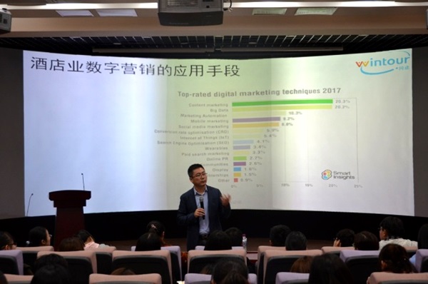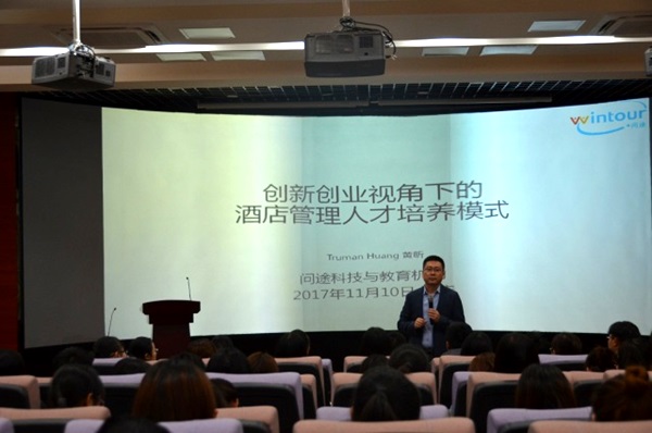 黄昕 中国酒店业知名的网络营销专家和培训导师;香港理工大学酒店及旅游专业博士生;美国饭店协会教育公司“注册饭店高级职业经理人CHA”;“注册饭店教育导师CHE”;E-hospitality酒店数字营销专业方向课程开发人;问途信息技术有限公司创始人;中国电子商务协会注册高级培训师;多家酒店集团顾问;多家高等院校客座教授。 讲座开始,黄昕老师做了简要的自我介绍,并给同学们分享了从一个酒店门童到如今问途公司创始人的职业经历。黄老师从自己的创业经历为切入点,分析了在互联网+大背景下酒店行业的发展趋势。在未来,随着信息技术的高速发展,人工智能的兴起,势必会带来一场酒店经营观念的革命——网络营销革命。 “人人都是消费者,人人都是销售者,人人都是传播者,与自己的客户建立联系网络,让顾客帮助你建立销售网络,一节一环紧紧相连。”黄昕老师用阿里巴巴,携程,扬州金陵饭店等多个成功的营销案例介绍了当今企业的营销理念与营销手段。他同时还向我们介绍了如今最受青睐,最有成效的营销方式——数字营销。只有发掘酒店产品背后的故事与酒店产品有效结合,才能给顾客带来不一样的用户体验,达到营销目的。 那么在这样的一个大背景下,其应该具备什么样的素质?我国的高等教育现况又是怎么样的?酒店业高等教育和行业需求又应该是什么样的呢?黄昕老师通过大量的数据,分析了现今我国高等教育与行业需求的GAP,提出了四个关键要点。他认为应当加快高校的供给侧改革,培养数字营销人才。构建酒店数字营销课程实践平台,让员工们在实践中能有所知,能有所感,能有所悟;不断积累营销经验,培养大量可以充实酒店行业的新型管理人才。 黄昕老师不断的告诫同学们,要加强综合能力的锻炼特别是与人沟通的技巧,重视英语学习,通过大量的社会实践来积累经验,争取在众多专业毕业生中脱颖而出。课后同学们纷纷表示,通过本堂课的学习加深了对酒店行业的了解,找到了适合自己的定位。并将在以后学以致用,积极参加各种行业实践活动,增强自身的综合能力,提高行业竞争力。