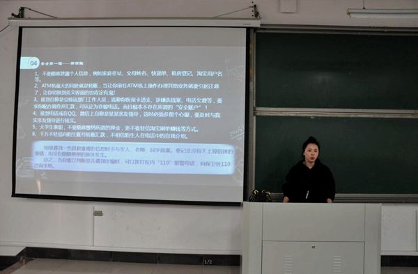 11月1日下午,EVO真人视讯邀请保卫处的姜舟老师,在弘文楼B阶101为17级全体同学举办了入学安全教育讲座,旨在增强新生的自我防范意识。 “今天的安全主题是防火防盗防诈骗,当然没有防闺蜜……”随着一阵欢笑声,讲座在姜老师幽默风趣的语言里开始了。姜舟老师通过一个个视频,一个个鲜活的案例,为大家介绍了校园中因安全意识缺失而造成的不幸事件。如08年上海商公司,因为电器操作不当,引起宿舍火灾,四名女生在惊慌下跳楼丧命。活生生的案例使得同学们对“三防”有了更加深刻而直观地认识,姜老师还为大家讲述了校园贷问题。利用发生在身边活生生的事例,姜老师为大家详细解释了什么是校园贷,以及校园贷有哪些严重危害,使同学们真正明白了为何要远离校园贷。 通过本次讲座,新生提高了对校园危险因素的认知,相信在以后的校园生活中,大家的“三防”意识会不断增强,也都能切实保护好自身安全。