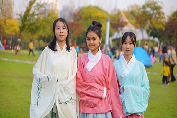 此次活动主要分为三个部分,重阳登高、汉服体验和尊老敬老。众人先聚集于水渡池畔,领略池畔清雅宁静的独特风光。金秋桂子送花香,重阳佳节登高乐。正值菊花怒放,魏紫姚黄,清芳幽香,同学们一路踏歌而行,欢声笑语。紧接着是大家期待已久的汉服体验,越罗裳袂迎春风,玉刻麒麟腰带红。光彩夺目的霓裳和质朴淡雅的素衣相得益彰,在美丽的水渡池畔形成了一道亮丽的风景线。傍晚时刻,大家与一群老人以及几位哈萨克斯坦的友人围坐在一片宽阔的草地上,一起畅谈重阳的故事,一起食重阳糕,插茱萸叶,看日落景。活动结束后,大家一起登船游湖,共赏钵池山的秋日美景。