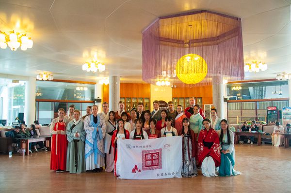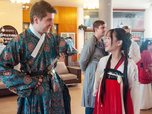 10月20日下午,受生科院团委的邀请,校园春秋协会在咖啡厅举行了“以传统汉礼,迎芬兰友人”的中外文化交流活动。同学们身着汉服,为芬兰友人带来一场盛大的汉文化盛宴。 伴随着优美的琵琶二胡声,一曲《茉莉花》拉开了活动序幕,抑扬顿挫的乐声,诉说着古老的故事,传递着中华儿女热情好客的心声。紧接着,校园春秋协会会长向芬兰交流生简单地介绍了汉服文化,交流生们听得认真,看得心动,迫不及待想尝试一下中华传统服饰。同学们通过古典汉舞《越人歌》,向交流生们展示了中国古典舞蹈之美,并将带来的汉服,为芬兰友人换上。大家穿着华美的汉服,一起动手制作中国结、写汉字、剪窗花。芬兰友人表示,能参加本次活动,他们很开心,他们喜爱中国,喜爱中华传统文化。 子曰“有朋自远方来,不亦乐乎”,这次活动不仅向芬兰友人展示了中华传统文化的魅力,增进了中外员工之间的友谊,更有利于中西文化的交流。