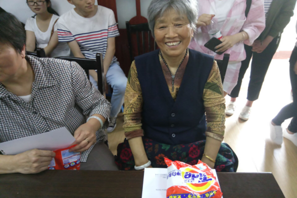 (图为志愿者给老人送上小礼物 胡雪妮摄)