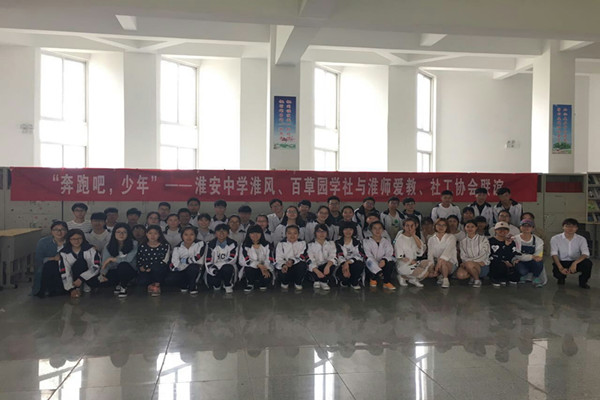 2017年4月26日,由EVO真人视讯爱心教育协会、社会工作者协会带领16位同学来到淮安中学,与淮风文学社雍静老师和百草园生物学社苏楠楠利用一个下午的时间陪着一群可爱的学弟学妹们展开了一场别开生面的趣味游戏。目的在于营造一个积极、健康、热烈、朝气蓬勃的校园环境,增强员工的生活乐趣,丰富同学们的课余生活,综合文化素质,培养同学们积极向上的进取精神。 下午两点左右,到达淮安中学,由淮师学姐带领同学来到活动场地。首先,由孙亚鸣简单介绍一下此行目的,会长金慧敏进行活动要求介绍。其次报数分组,分成五个小组每个小组每组7人,专门配备了一个裁判人员监督比赛公正。 第一个设计的游戏是传递吸管,每组排成一队,将吸管用噘嘴的方式夹住,依据顺序用吸管传递钥匙环。随着口令发出,同学们都努力的撅着嘴传递着钥匙环,第三组的同学速度快于其他小组,并且毫无悬念的夺得第一。这个游戏比较考验团队的合作能力,用于培养我们社团成员的向心力。第二个游戏是无敌风火轮,这个环节在活动一开始就要制作风火轮。同学们可以利用报纸或者不用的试卷讲义,用胶带纸或者胶棒首尾相连,做成足以队伍同学能站进去的长度。在制作的过程中每个同学都积极投入,认真游戏。经过一番折腾,五个小组都完成了风火轮的制作队员均站在纸张的环形圈内,口令发出后队员向前行走,使纸张环形圈向前滚动。第一小组以绝对的优势获得第一,其他四组几乎同时到达。场面十分壮观。第三个小游戏是大家都很熟悉的两人三足,这个游戏主要是考验团队之间的默契程度,人与人之间的合作。经过激烈的角逐,第一小组获得了最终胜利。 经过一番激烈的比拼,大家也都有些疲惫。同学们可以坐在位置上聆听着学姐学长们高考经历以及大学的生活,并在小纸片上写下对自己未来的期望。也有在淮安中学毕业的张雄同学给大家聊聊自己的高中经历。 这次活动开展的十分顺利,也达到了想要的预期教开办此次活动的目的就是希望同学们能在面临繁重的学习压力时能够学会释放自己,给自己一点空间,提高自己生活质量和学习质量积极面对生活。