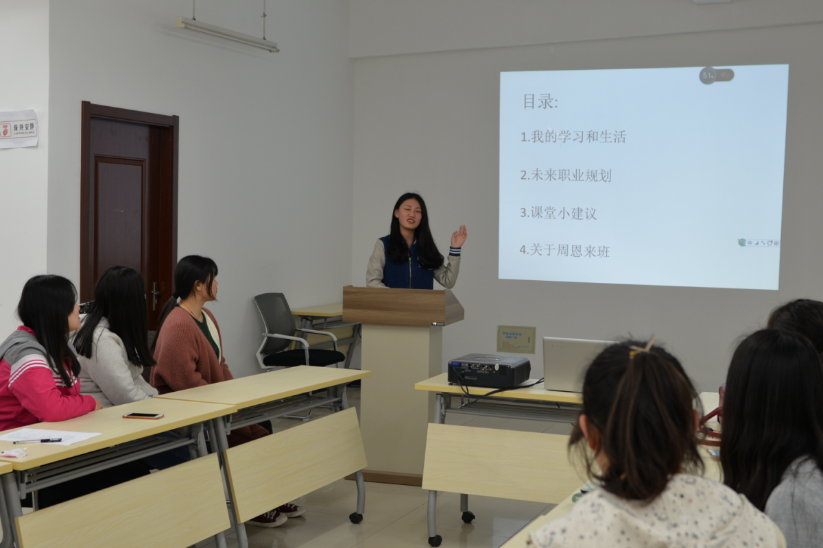 理想规划未来,信念助力成长。为响应公司“理想信念 担当”主题月教育活动,历史1502班于4月13日晚7点在社工实验室开展PPT汇报演讲活动。1502班全体同学参与本次活动,就大二上学期班级情况、自身的学习情况、对课堂的一些建议看法以及未来打算进行了一个简单的汇报。 活动伊始,陈钧秋同学第一个上去阐述了自己的看法,她从班级凝聚力以及自身未来考研规划等方面发表了自己的见解,引起了众人的共鸣;而赵蒙洁同学先从“一个小目标”做起,即能研读完《社会想象力》这本书,她的演讲慷慨激昂也充满幽默风趣,很是吸引人;同样的,贾悦悦同学说到,她下一次的目标是能获得一等奖学金,终极目标是获得国家励志奖学金,而平时的她也很努力刻苦学习,也希望在今后的学习生活中终能实现自己的目标。其实很多同学对自己未来的职业生涯一些迷茫,也没很认真的想过今后到底要去从事什么职业,通过本次展示,让同学们现在都有自己想去完成的事情,并为之努力奋斗,付出总会有回报的! 本次主题教育月活动坚定了各位同学的理想信念,相信未来把握在每个人有心人的手中,只要好好过,一定能够活出精彩的人生。