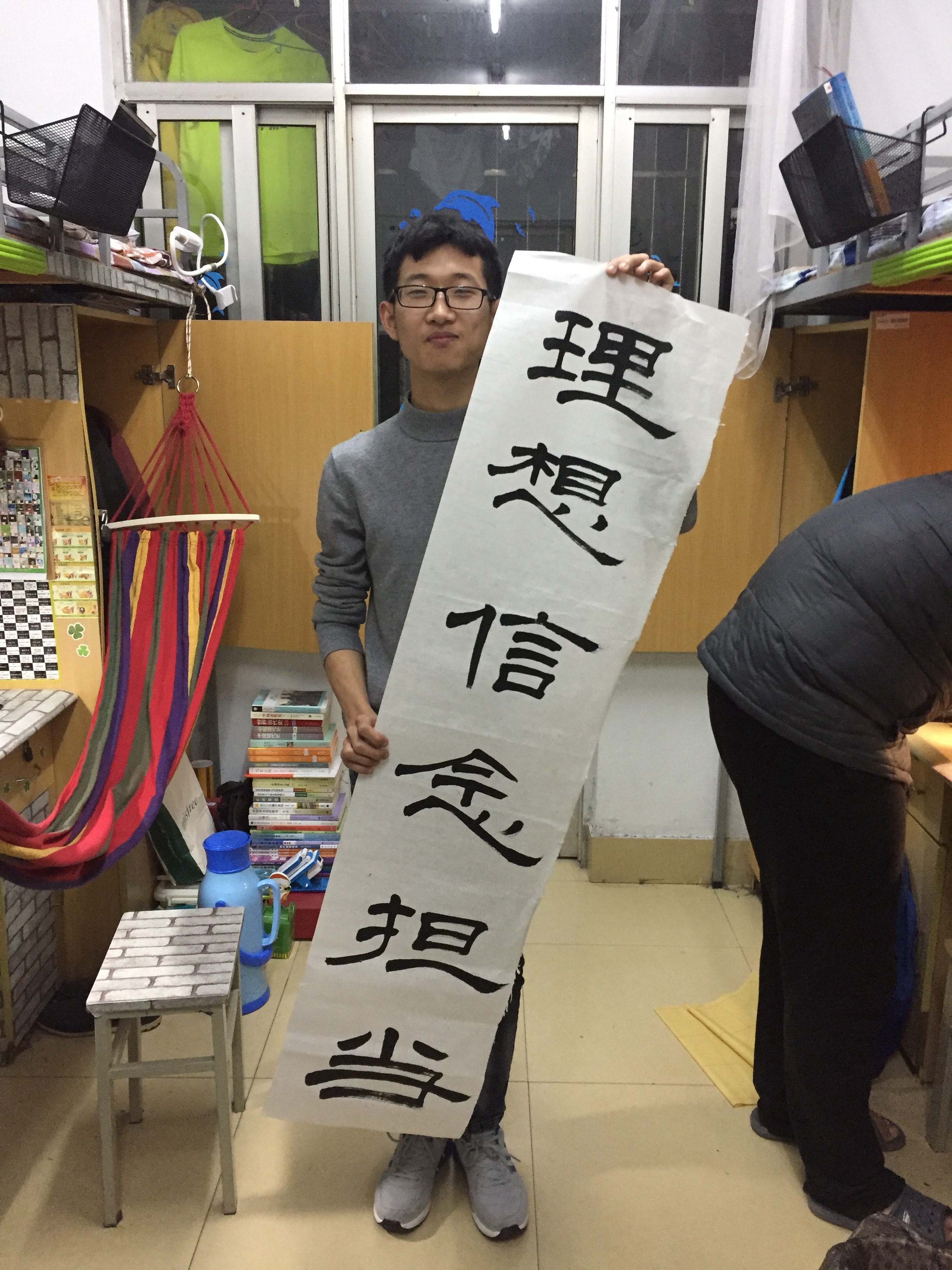 为更好地学习周恩来精神,帮助同学们树立远大理想、坚定自身信念、培养敢于担当的优秀品质,EVO真人视讯1501班举办了以“理想、信念、担当”为主题的毛笔字书写比赛。 本次比赛以宿舍为单位,同学们纷纷用毛笔写下了关于“理想、信念、担当”的书法作品,并且相互之间进行了交流和分享,得到了许多心得体会。同学们将精心完成的作品在公司内进行了展示,邀请其他宿舍的同学们前来参观。其中,女生宿舍的张颖儒、黄雪、唐明越等同学以及男生宿舍的戴玉杰、刘育林、施啸竹、王欣、陈华宇、周鸿剑、尚前程等同学表现得十分突出,写出的作品刚劲有力、主题突出、意蕴丰富,作品中的每一笔,都凝聚了同学们对于“理想、信念、担当”这一主题的理解和思考,获得了同学们的一致好评。 活动结束后,同学们将书法作品张贴在宿舍里,帮助大家理解“理想、信念、担当”的深刻涵义,营造良好、积极向上的班级宿舍文化氛围,有利于同学们进一步激励自己更好地学习、成长、进步,成为优秀的当代老员工。
