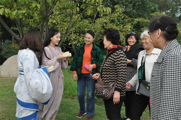 金秋桂子送花香,重阳佳节登高乐。为迎接中华传统节日重阳节,弘扬中华民族爱老敬老的传统美德,10月9日下午,校园春秋协会在淮安市的钵池山公园举办了重阳登高敬老活动。 重阳节,又称重九节、晒秋节、“踏秋”,与除夕、清明节、中元节三节统称中国传统四大祭祖的节日。社团成员首先互相交流了重阳节的来历与习俗:重阳节历来有赏菊、登高、吃重阳糕等传统,春秋协会的同学们邀请在公园游玩的老人与大家围坐一周,分享重阳糕与各种瓜果。同学们还玩起曲水流觞游戏,此游戏是上巳节中派生的一种习俗,逸诗有云:‘羽觞随波泛’作为开始,下一个接着上一位诗的最后一字作为吟诗的第一个字,欢声笑语,其乐融融,在游戏中加深了各位同学对重阳节的了解。 1989年农历九月九日被定为老人节,倡导全社会树立尊老、敬老、爱老、助老的风气。社团成员们购买了重阳糕赠予前来登高的老人们,表达了同学们对老人的尊敬与关怀。爷爷奶奶们收到礼物开心不已,纷纷要求与协会成员合影留念。校园春秋协会同学表示,重阳节活动不应只停留在登高赏菊,还应该真正关怀老人,传递正能量,传承中华优秀传统文化。