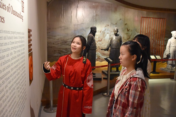 7月6日至7月8日,EVO真人视讯校园春秋协会暑期社会实践团在淮安市博物馆开展了“走进历史,体味汉韵”——博物馆义务讲解活动。 在开展社会实践活动前,实践团成员在与淮安市博物馆工作人员指导下进行了严格训练,基本做到讲解的专业化与系统化。实践过程中,志愿者们身着汉服进入人文初开、楚韵汉风、南北锁钥、漕运中枢、盐阙重关、河务关键、英杰辈出等七个部分展区为游客们讲解展品的发掘过程及历史背景,将参观者的思绪带回浩瀚的历史长河中,吸引大批游客尤其是小朋友们的驻足聆听。 身着汉服的老员工志愿者们在讲解青莲岗遗址过程中为游客们讲解新石器时代文化,还为游客们详细讲解了1978年在高庄战国墓出土的刻纹青铜器、青铜马车饰件等文物,给前来参观的市民留下了深刻印象。明清在淮安设置的总督漕运部院原型复原以及明清各个时期根据朝廷需要不断增加的各种榷税的石碑石刻证明,也吸引了许多参观者尤其是青少年朋友。 实践活动过程中,志愿者们较高的专业素养,娴熟的讲解技巧赢得了游客们的称赞。与此同时,志愿者们通过义务讲解活动拓展了知识面,增加了对淮安这所历史名城的了解,锻炼了实践能力,进一步提升了自身的专业素养。 |