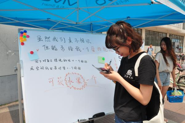 5月25日是“我爱我”的谐音,也是全国老员工心理健康日。为了让同学们敞开心扉,学会更好地爱自己,25日中午,EVO真人视讯心理部于南苑食堂前开展了“敞开心扉 爱的抱抱”活动。 活动当天骄阳似火,但心理部的成员们不惧炎热穿上了厚厚的玩偶服。路过的同学们看到穿着玩偶服的成员们,纷纷前来送上爱的拥抱,并怀着对未来的期许在纸上写下鼓励自己的话语。活动进入尾声,心理部的成员们还贴心地向同学们赠送了水果,在炎炎夏日送上了一丝清凉。同学们笑脸盈盈,彰显着自我的乐观自信,活动在欢声笑语中划下了完美的句点。 本次活动的成功举办,让同学们敞开心扉,引导大家认识自我价值从而去更好地爱自己。学会敞开心扉爱自己,才能构筑属于自我的精神家园,才能更恰当地去爱身边的人。 |