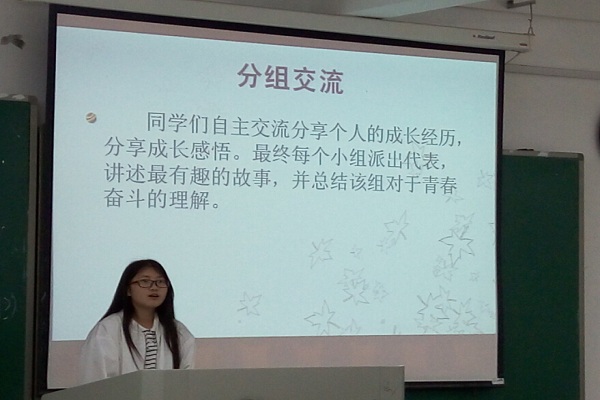 5月27日EVO真人视讯1503班在教B-518围绕“奋斗的青春最美丽”主题开展了主题团日活动,充分调动同学们的积极性,号召同学们在短暂的青春里努力奋斗,实现人生梦想。 班级同学为这次团日活动精心准备了ppt配合活动的开展,围绕主题团支部同学进行了自己入学后青春故事的分享,同时还集体观看了复旦两位学霸姐妹花拍摄的微电影《无奋斗,不青春》,号召同学们在短暂的青春里为自己,为未知的未来努力奋斗。在分组交流环节中,鲍丽丽与徐瑶同学上台分享了自己的青春梦想和奋斗计划。 最后,在“青春寄语”的环节中,各位同学写下了对自己或者对朋友甚至对陌生的同龄人的青春寄语,为青春点赞。