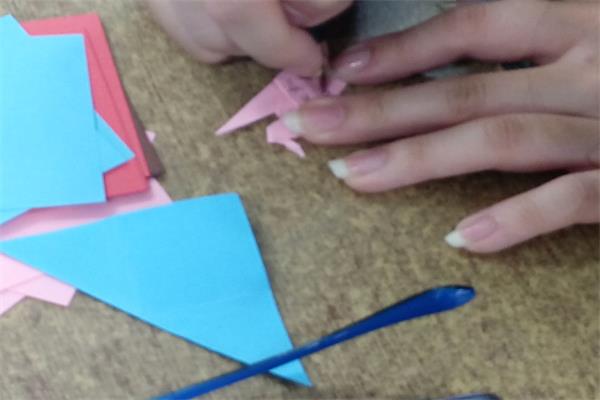 第二环节,同学们在彩纸上写下对母亲的祝福,然后将彩纸折成一只只千纸鹤,并计划在回家时把纸鹤送给自己的母亲。纸鹤如同一只爱的小船,承载着大家对母亲的思念与感恩之情。