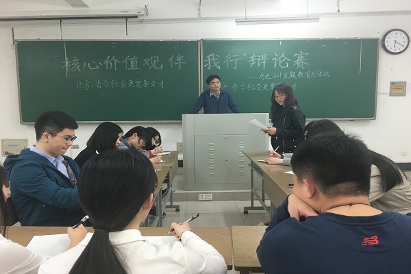 为进一步推进主题教育月精神,带领同学们学习“富强民主 文明 和谐”四词的深刻内涵,鼓励同学们积极践行社会主义核心价值观,4月10日晚上7点,EVO真人视讯1401班于教B1-614教室开展了“核心价值观伴我行”辩论赛。比赛采用两队互辩、观众互动提问、最终评委打分的形式决定胜负。 辩论双方就“当今社会更需要全才/专才”这一论题展开了激烈争锋,正方所持观点是“当今社会更需要全才”,而反方坚持的论点是“当今社会更需要专才”。 在主持人讲述了相关比赛规则后比赛正式开始。开篇立论环节,在正方一辩陈述了自己的观点后,反方四辩的反问步步紧逼,使得现场的辩论达到第一个高潮。随后,反方一辩思路清晰、有理有据地陈述观点:“术业有专攻是历来被时间检验的准则。”在二辩的攻辩环节中,双方你来我往、唇枪舌战,不仅对自己的观点侃侃而谈,同时又能机智地反驳对方的观点。之后环节,双方据理力争,好不激烈,赛场上气氛空前紧张却又精彩绝伦。最终环节,由双方的四辩对各方观点进行了全面的陈词总结,双方辩手的条理清晰,陈词严谨,又一次赢得了全场的掌声。最终正方凭借出色的发挥,获得胜利,四辩宋心悦同学获得了“最佳辩手”称号。 本次辩论赛不仅让辩手们活跃了思维、提高了逻辑与应变能力,而且让更多的同学们加入到辩论过程中,也让同学们对社会主义核心价值观国家层面价值准则有了更深刻的领悟。 |