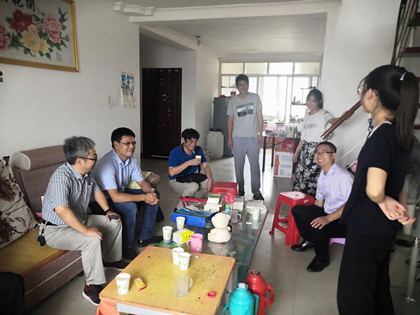 为了更好在生活和学习上帮助困境家庭儿童,呵护她们健康成长,8月28日下午,EVO真人视讯社会工作系党支部赵海林,丁浩亮,于贯生一行与省委驻淮阴区帮扶工作队队员谢举文和淮安市社会组织发展促进会社工一起对淮阴区南陈集镇渔塘村张雨姐妹进行了走访慰问。