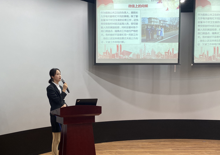 活动伊始,主持人向大家介绍了自疫情以来中国展示出的非凡力量和英雄事迹。随后,两位同学分别上台分享疫情中“最美的瞬间”,让大家感受到了战“疫”期间的人民力量和青春榜样。紧接着,主持人展示了班级同学疫情期间参加的丰富多彩的活动,并请参与志愿服务的两名同学上台分享自己的实践故事。最后,带领同学们共同学习“四个自信”,深刻认识制度自信的显著优势,做中国特色社会主义制度的坚定信仰者。伴随着一段饱含情感的诗朗诵,本次活动圆满结束。现场同学积极分享观摩感受,林麟老师提出宝贵意见,鼓励各班积极开展主题团日活动,使同学们能够在活动中学有所感、学有所获。