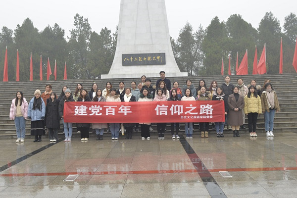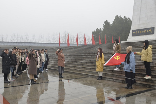 活动中,同学们参观了砥柱主题雕塑、八十二烈士纪念碑、淮阴区党史陈列馆、八十二烈士纪念馆等,瞻仰革命先烈的丰功伟绩,深刻领悟刘老庄连“生命不息,战斗不止”的精神内涵。烈士纪念碑前,全体党员面向党旗,举起右手庄严宣誓,重温入党誓词。八十二烈士纪念馆内,同学们聆听了烈士的革命事迹,了解了刘老庄的革命历史,感受了革命先辈敢于牺牲,奋勇抗敌的英勇气概。