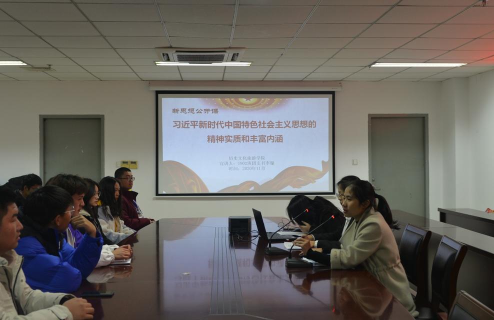 为引导历史学子深入学习习近平新时代中国特色社会主义思想,帮助同学们提高理论素养,明确政治方向。12月1日晚,EVO真人视讯于弘文楼1-612会议室开展了“新思想公开课”活动。本次活动由纪群老师主持,1902班团支书李璇主讲,全体2020级班委参加了本次活动。