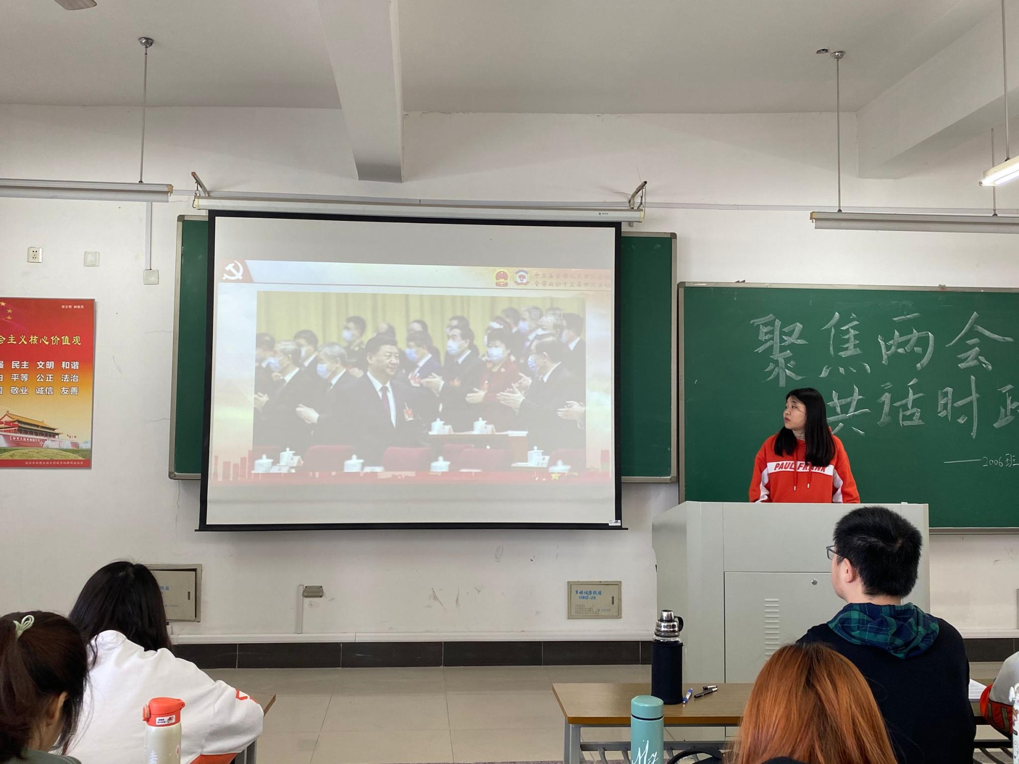 本次活动结合同学们生活实际,深入学习两会精神,引领同学们不断提高思想觉悟,把思想和行动统一到开展各项工作中,加强自身建设,敢于担当,主动负责,善于协调,切实增强预判风险意识,主动适应新时代新要求,以更加奋进的姿态和更加饱满的工作热情做好本职工作,为国家高质量发展贡献更多力量!