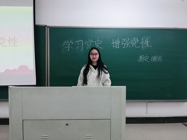 为提高同学们对党史知识学习的积极性、主动性,营造浓厚的党史学习氛围,坚定同学们知党爱党信念,历史1906班于4月13日晚在弘文2-506举办“学习党史,增强党性”主题班团活动。活动由柏芸同学主持,全班同学参与活动。