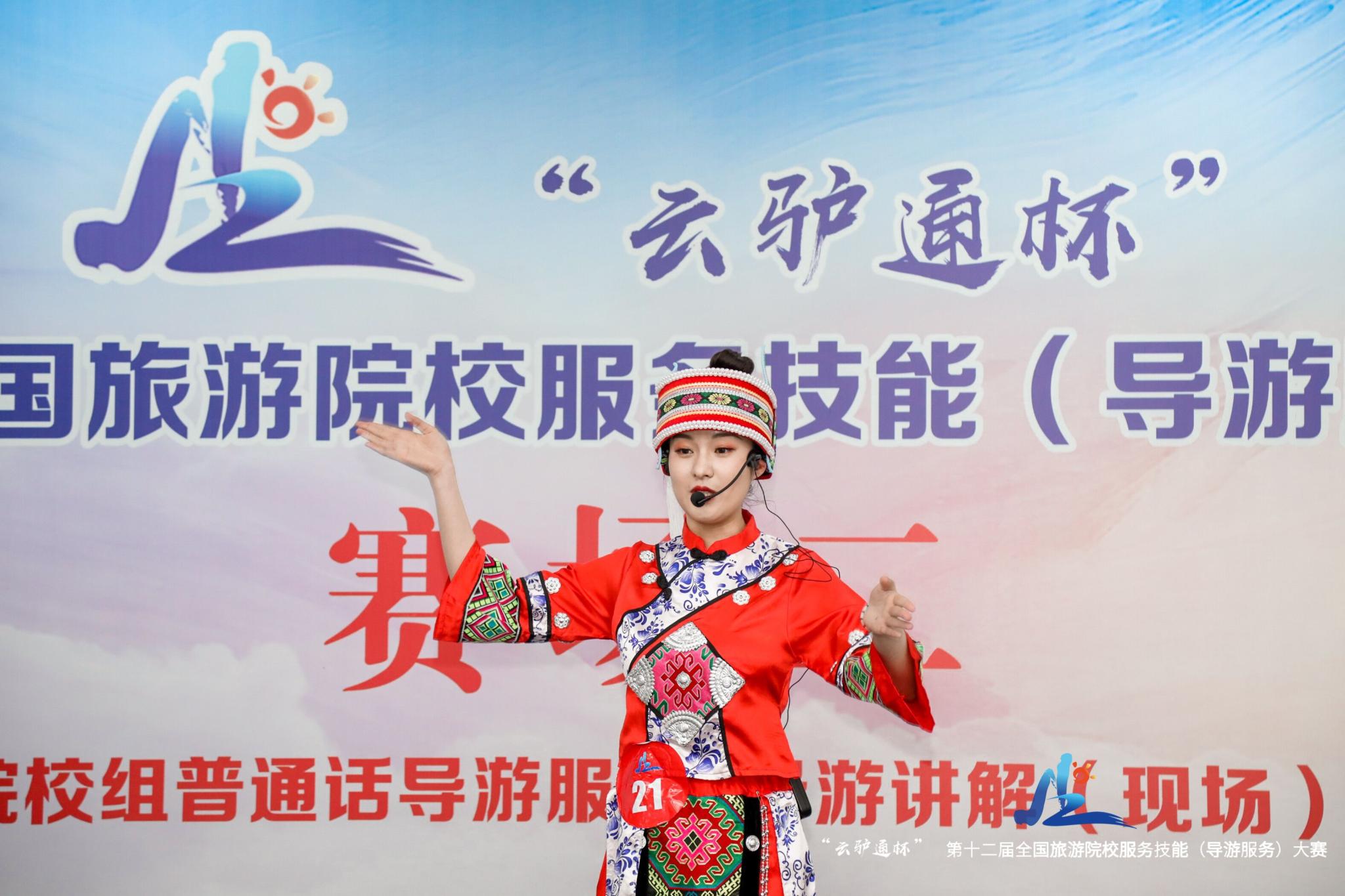 全国旅游院校服务技能(导游服务)大赛由中国旅游协会旅游教育分会主办,是我国旅游教育领域具有影响力、高质量、有特色的品牌赛事,比赛难度不断升级,竞争异常激烈。今年比赛吸引了来自全国29个省、自治区、直辖市的344所院校参赛队同台竞技。比赛分普通话讲解服务、英语讲解服务2个组别,赛项由综合知识理论考核、景点讲解(现场)、专题讲解(现场)、才艺展示四个部分组成。在3天3晚的时间里,1035名选手分12个赛场进行激烈较量,通过赛场直播,向全国高校及旅游业从业者贡献了一场场精彩绝伦的比拼,展示了新时代旅游教育的高品质成果。
